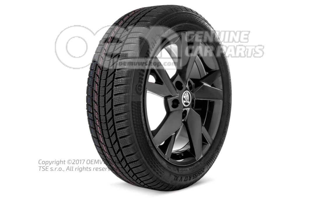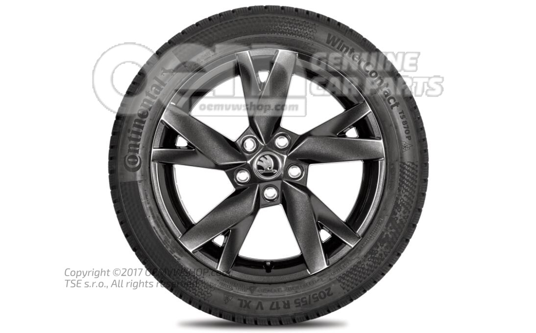 Kompletne koło zimowe 17-calowa felga aluminiowa odpowiednia do łańcuchów śniegowych. Błyszczący czarny metalik 5E3073627 FL8