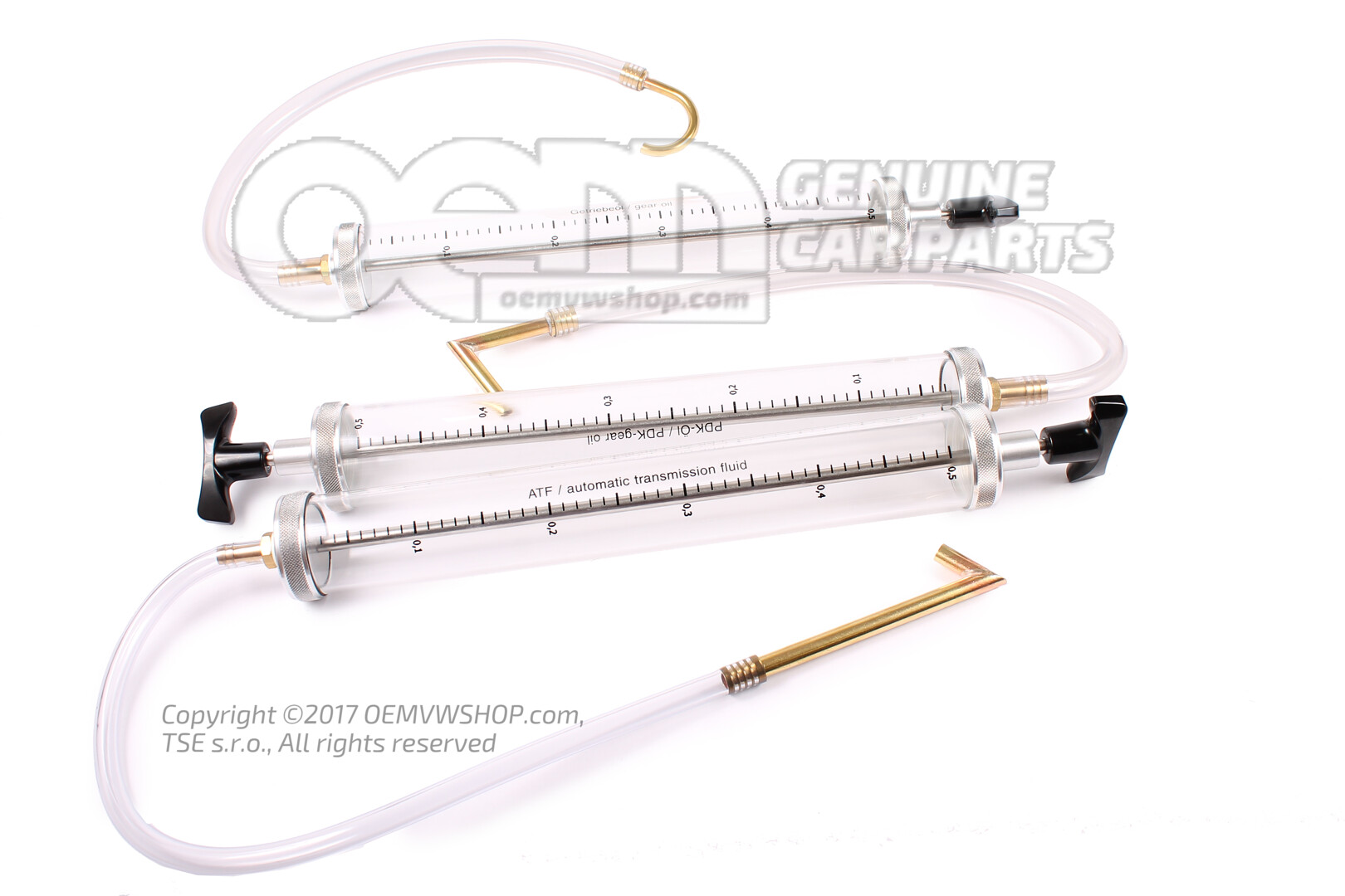 1× metering pump marked “only for gear oil” with Porsche-specific filling adapter 1× metering pump marked “only for PDK” with PDK-specific filling adapter 1× metering pump marked “only for ATF” with ATF-specific filling adapter